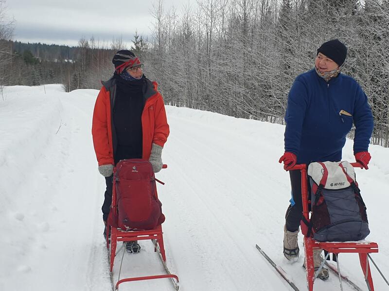 Nach dem Frühstück erhalten Sie Ihre Skiausrüstung und eine Einführung mit den wichtigsten Informationen. Sie starten die ersten Skiversuche und üben, sowohl in einer gespurten Loipe als auch querfeldein zu laufen. Zudem eignen Sie sich grundlegende Techniken an: wie man am besten wieder aufsteht, wenn man gefallen ist, und wie es am besten bergauf oder bergab geht. Dann drehen Sie Ihre erste Runde auf der Hausloipe des Gasthauses. Am Nachmittag spielen Sie auf dem Hof gemeinsam Kyykkä, das karelische Nationalspiel. Und am Abend verwöhnen Sie sich in der Sauna und mit einem Kräuterfußbad.