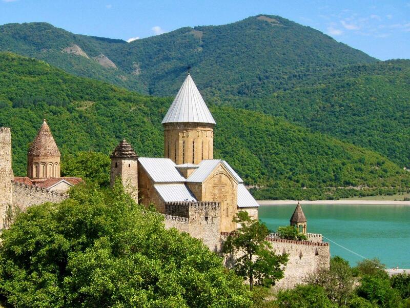 Über die Georgische Heerstraße fahren Sie in die höheren Regionen des Kaukasus. Unterwegs besuchen Sie die Wehrkirche Ananuri, die malerisch am türkisblauen Schinwali-Stausee liegt – ein Anblick wie aus dem Bilderbuch. Und genauso geht es weiter: Mit jedem Kilometer rücken die Gipfel näher. Ihre Wanderung startet in Stepantsminda und führt zur Gergeti-Kirche (2.170 m). Und wenn sich dahinter der schneebedeckte Kasbek (5.033 m) erhebt, zeigt sich eines der großartigsten Panoramen Georgiens.