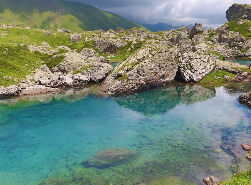 Nach dem Auftakt in Tbilissi beginnt Ihr Trekkingabenteuer in Kasbegi mit der Besteigung der Tetu-Spitze. Zwischen weiten Rhododendrenhängen, deren weiß-gelbe Blüten die Hänge wie schneebedeckt wirken lassen, tauchen Sie tief in diese Bergwelt ein. Vom Gipfel öffnen sich die ersten großartigen Blicke auf den Kasbek (5.033 m). Sie durchqueren den Großen Kaukasus – über den blumenreichen Abudelauri-Pass und vorbei an den drei Abudelauri-Seen, jeder in einer anderen Farbe: Weiß, Türkis und Smaragdgrün. Der höchste Punkt der Reise ist der Atsunta-Pass (3.550 m) – einer der höchsten Pässe Georgiens. Die Pfade sind fordernd, doch die überwältigende Berglandschaft belohnt jeden Schritt.