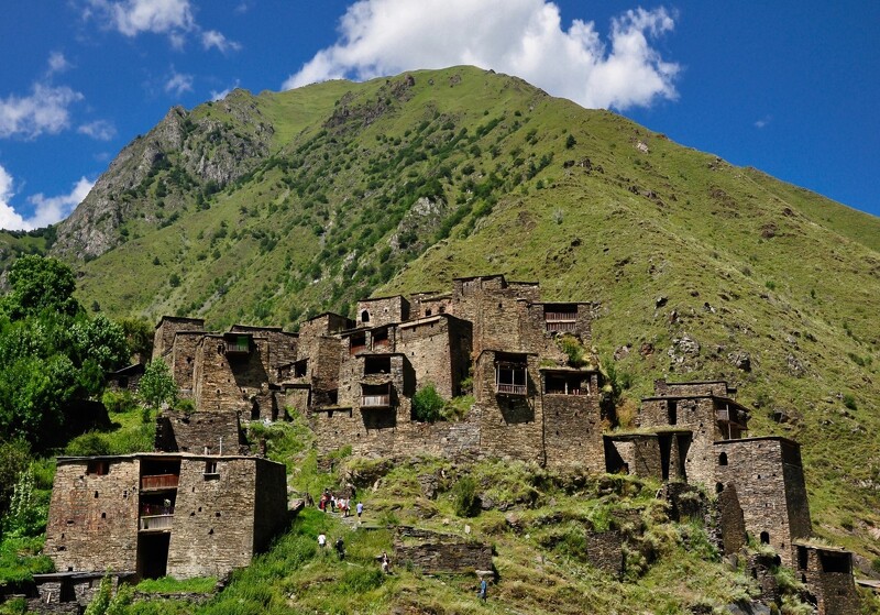 Heute wandern Sie durch die Dörfer Parsma, Tschesho und Dartlo, wo mittelalterliche Wehr- und Wohntürme vom Leben vergangener Jahrhunderte zeugen. Zwischen den alten Steinhäusern trocknen auf hölzernen Balkonen Kräuter und Käse in der Sonne – ein authentischer Einblick in ein noch heute gelebtes Kulturerbe des Kaukasus. Mit jedem Schritt tauchen Sie tiefer in eine der eindrucksvollsten Regionen Tuschetiens ein. Ihr Lagerplatz beim Dorf Dartlo (1.830 m) zählt zu den schönsten der gesamten Reise.