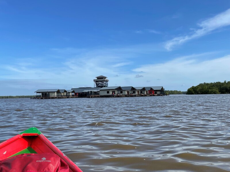 Genießen Sie ein letztes Mal den magischen Sonnenaufgang mit einem frischen Kaffee auf Ihrer Terrasse oder einem morgendlichen Bad im Pool. Anschließend geht es per Einbaumboot und Bus zurück zur Küste und weiter zur Westseite von Suriname. In Nickerie besteigen Sie ein Boot und fahren mitten hinein in das Naturschutzgebiet Bigi Pan. Ihre Lodge besteht aus kleinen schwimmenden Holzhäusern und ist einzigartig mitten in dem 67.000 ha großen Feuchtgebiet mit Mangroven gelegen.