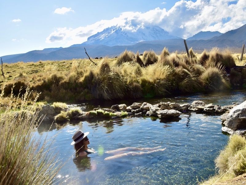 Früh am Morgen besichtigen Sie ein Geysirfeld dessen Aktivität zu dieser Zeit am höchsten ist. Im Anschluss erwandern Sie den Nationalpark mit seinen beeindruckenden Fernblicken auf die wunderschön geformten Vulkane. Es geht hinauf zu drei Bergseen an der chilenischen Grenze auf knapp 4. 900 Metern. Auf dem Weg dorthin durchstreifen Sie Kewiña-Wälder, und treffen auf Lamas und Alpacas. Am Nachmittag erholen Sie sich in den natürlichen Thermalquellen von Sajama.