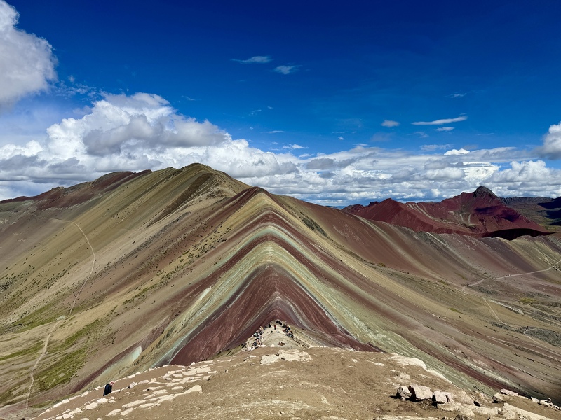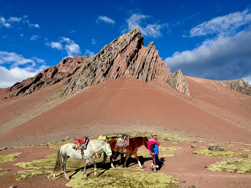 Nach dem Frühstück überqueren Sie einen weiteren 5.000er-Pass. Ein letztes Mal können Sie einen Blick auf den hinter Ihnen liegenden Ausangate werfen, während sich vor ihnen ein atemberaubendes Panorama über die rot gefärbte Vilcanota-Bergkette eröffnet. Am Nachmittag erreichen Sie ein weiteres Highlight, den bunt gefärbten Vinicunca-Regenbogenberg. Im Anschluss wandern Sie auch die surreale Landschaft des Roten Tals und erreichen kurz darauf Ihre Lodge (4,800 m).