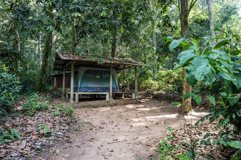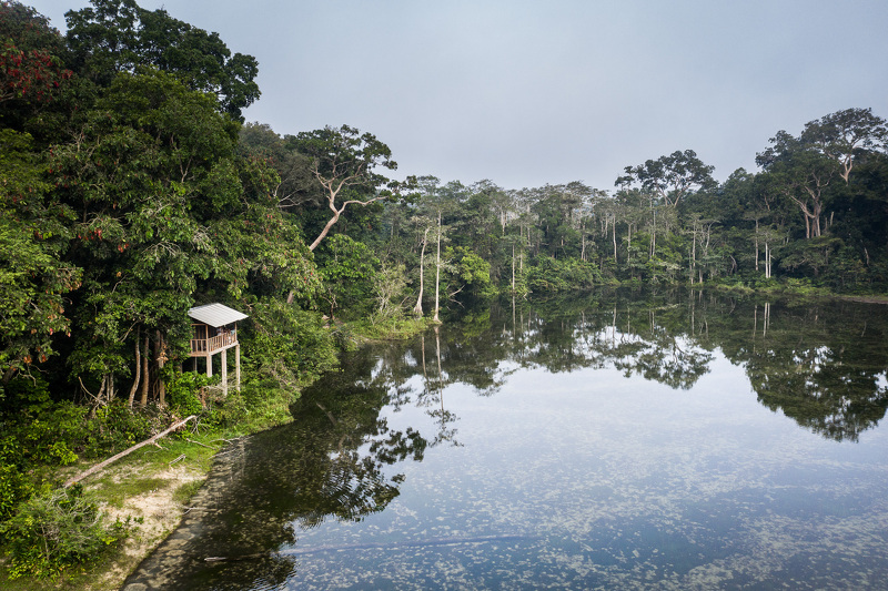 Zu Fuß geht es zur Wali Bai, einer überfluteten Waldlichtung rund vier Kilometer von Bomassa entfernt. Besonders am frühen Morgen und späten Nachmittag zeigen sich hier Waldelefanten, Waldbüffel, bunte Vögel und andere Tiere. Am Nachmittag errichten Sie auf der Aussichtsplattform Ihr Nachtlager. Das Campen an einer Bai ist ein einzigartiges Erlebnis – nachts sind die Tiere kaum zu sehen, doch die Geräusche und Düfte des Waldes machen die Nacht unvergesslich.