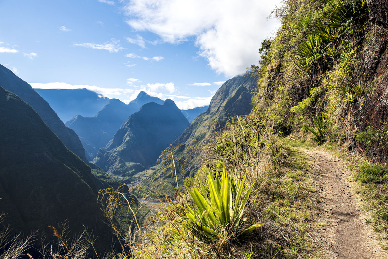 Über aussichtsreiche Pfade und offene Ebenen verlassen Sie Mafate, passieren blühende Mimosen und neugierige Ziegen. Dann folgt der steile Anstieg in engen Kehren zum Col du Taïbit (2.081 m) – dem Übergang nach Cilaos. Von hier genießen Sie einen fantastischen Blick ins zweite Tal Ihrer Reise. Der Abstieg führt in Serpentinen zum Bras Rouge, dessen klare Becken zu einer erfrischenden Pause einladen. Gestärkt geht es hinauf nach Cilaos, Ihrem heutigen Ziel.