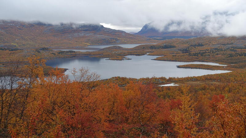 Die Herbstzeit ist in Nordschweden bunt, aber kühl. Die Durchschnittstemperatur beträgt zwischen 0°C und +10°C. Die Regenmenge ist gering. Auf der Hochebene kann es sehr windig sein und die Landschaft bietet kaum Schutz, weshalb warme Kleidung, ein sturmfestes Zelt und genug Zeltheringe hier ein Muss sind! Die Sonne geht um 7:00 Uhr auf und um 19:30 Uhr unter.
