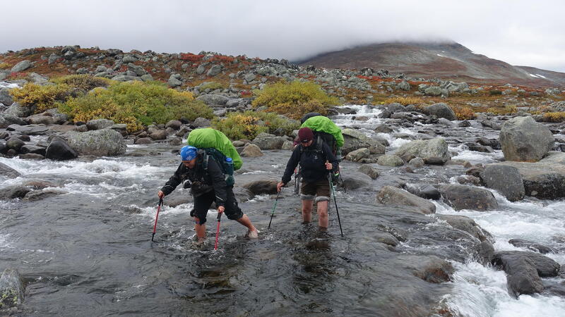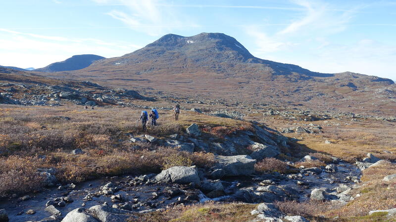 Am heutigen vierten Trekkingtag wandern Sie das Guhkeswagge-Tal nordwärts, bis Sie dessen Ende erreicht haben. Auch hier in der Talsohle gibt es keinerlei Pfad und es lässt sich nicht schnell Strecke machen. Bis Sie den Lagerplatz in Tjierra erreicht haben, müssen sehr geröllige Abschnitte bewältigt und Schluchten überquert werden. Die grandiosen Landschaften und Farben des Herbstes entschädigen für jede Mühe.