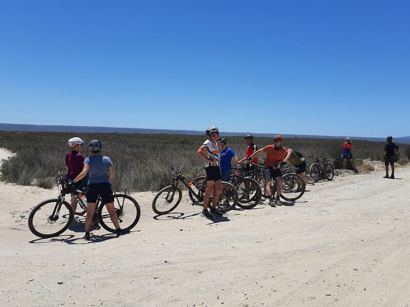 Nach dem Frühstück fahren wir Richtung Norden zum West Coast National Park, einem der wichtigsten Vogelschutzgebiete weltweit. Nach etwa 1,5 Stunden erreichen wir eine Landschaft aus weißen Dünen, kargen Felsen und einer türkisfarbenen Lagune. Unsere erste Fahrradtour führt über eine leicht hügelige Straße zum Picknickplatz Tsaarbank direkt am Meer – ideal für Mittagspause und Strandspaziergang. Übernachtung in einem Hotel in Langebaan, abends gemeinsames Essen und Programmplanung.