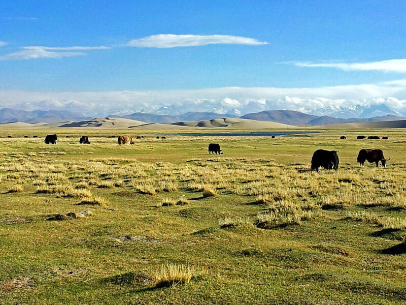 Die Reise führt weiter nach Westtibet, das eine überraschend vielfältige Tierwelt bietet – vielleicht entdecken Sie Yaks, Antilopen, Füchse oder Schwarzhalskraniche. Linker Hand begleitet der Yarlung-Fluss (Brahmaputra), dessen Quelle nahe der Route liegt. Bei Paryang richten Sie Ihr Nachtlager ein, umgeben von grasenden Yaks, saftig grünen Wiesen, Sanddünen und den schneebedeckten Gipfeln des nepalesischen Himalaya.