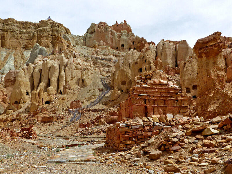Riesige Chörten markieren den Eingang zu Ihrem heutigen Ziel: die buddhistischen Höhlen im Kyhunglung-Canyon, einer der interessantesten Orte Westtibets. Forscher vermuten, dass Kyhunglung einst Hauptstadt des über 2.000 Jahre alten Shangshung-Königreiches war, das sich von Nordchina bis Pakistan und von Ladakh bis Lhasa erstreckte. Der Tag steht zur freien Erkundung der Ruinen zur Verfügung. Ihr Camp bietet dafür eine optimale Umgebung.