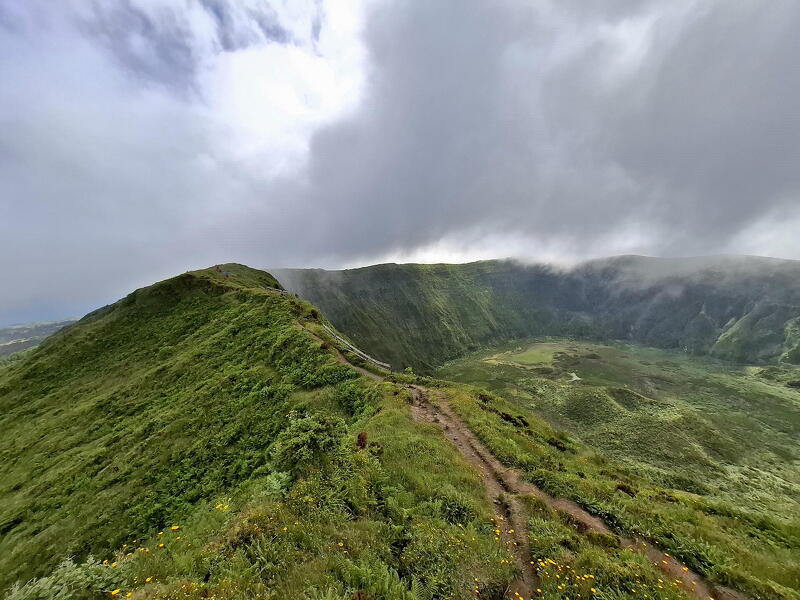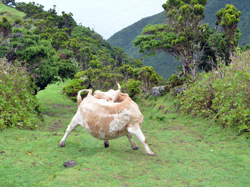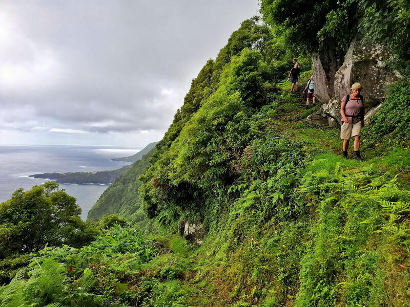 Unberührt und wild ist das zentrale Bergmassiv der Insel. Wie der Rückenpanzer eines Dinosauriers erstreckt es sich fast über die gesamte Länge der Insel. Sie wandern über sattgrüne Weiden, vorbei an verwunschenen Kraterseen, zum höchsten Gipfel der Insel – den 1.053 m hohen Vulkan Pico da Esperança. Anschließend geht es hinab zur Nordküste in die beschauliche Fajã do Ouvidor.