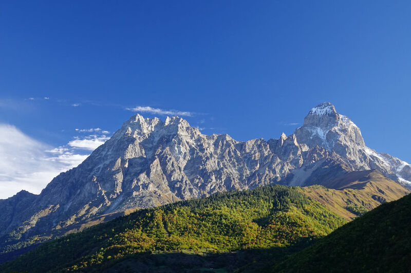 Durch das Sno-Tal fahren Sie bis in das abgeschiedene Bergdorf Dschuta, das sechs bis sieben Monate im Jahr von der Außenwelt abgeschnitten ist. Dort starten Sie Ihre Wanderung am Fuße des Berges Tschauchebi (2550 m). Optional können Sie weiter zur Tetu-Spitze aufsteigen. Der Weg führt durch Rhododendronfeldern, die im Juli in weiß-gelben Blüten erstrahlen und fast wie Schneefelder wirken. Am Gipfel belohnt Sie eine großartige Aussicht, dominiert vom majestätischen Kasbek (5047 m).