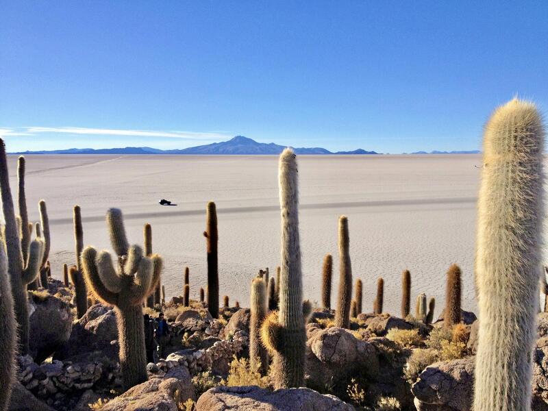 Spaziergang über die Kakteeninsel Incahuasi in der Mitte des Salzsees